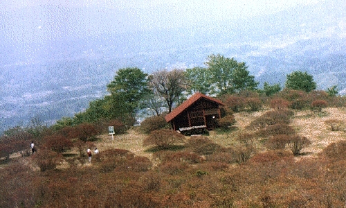 登山口は牧野,浮き金,門沢と3カ所あるが,自宅から一番近い門沢から登った。 日時 : 平成11年6月13日(日) 場所 : 田村郡船引町、大越町、小野町 ルート : 牧野登山口(6:10) → 水場(6:20) 水が豊かで、朝の静寂の中にウグイス が鳴いていた。 → 高柴山(7:05)休憩・朝食(7:55) → 水場(8:15) → 牧野登山口(8:25) コメント : 登山道は、あまり整備され過ぎていて、幅広い林道に 砂利に敷かれていて歩きずらく、足が疲れた。 帰りは、所々に廃道になった旧道を探し藪の中を 歩いた。こちらの方が、とても気持ちが良かった。 頂上にトイレは2カ所あり、牧野口に近いトイレは 汚れていたが、浮金口に近いトイレは、きれいだった。 登山道が3カ所あるが、門沢口からの登山は、 距離は長いが、歩いていて一番気持ちが良いと思う。